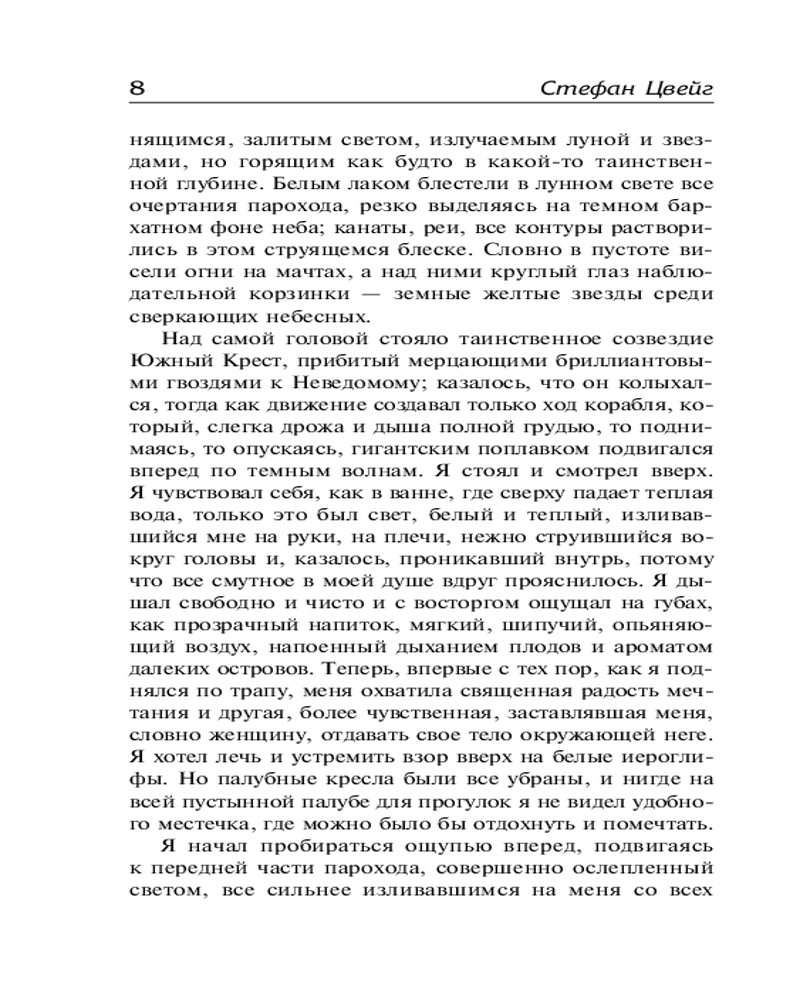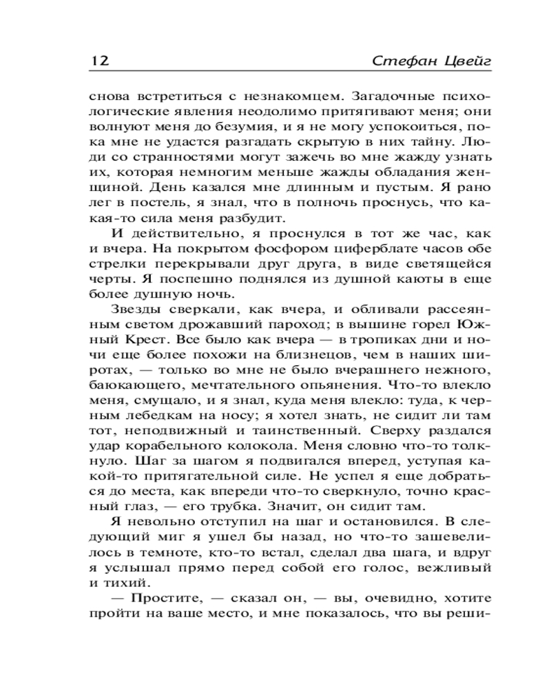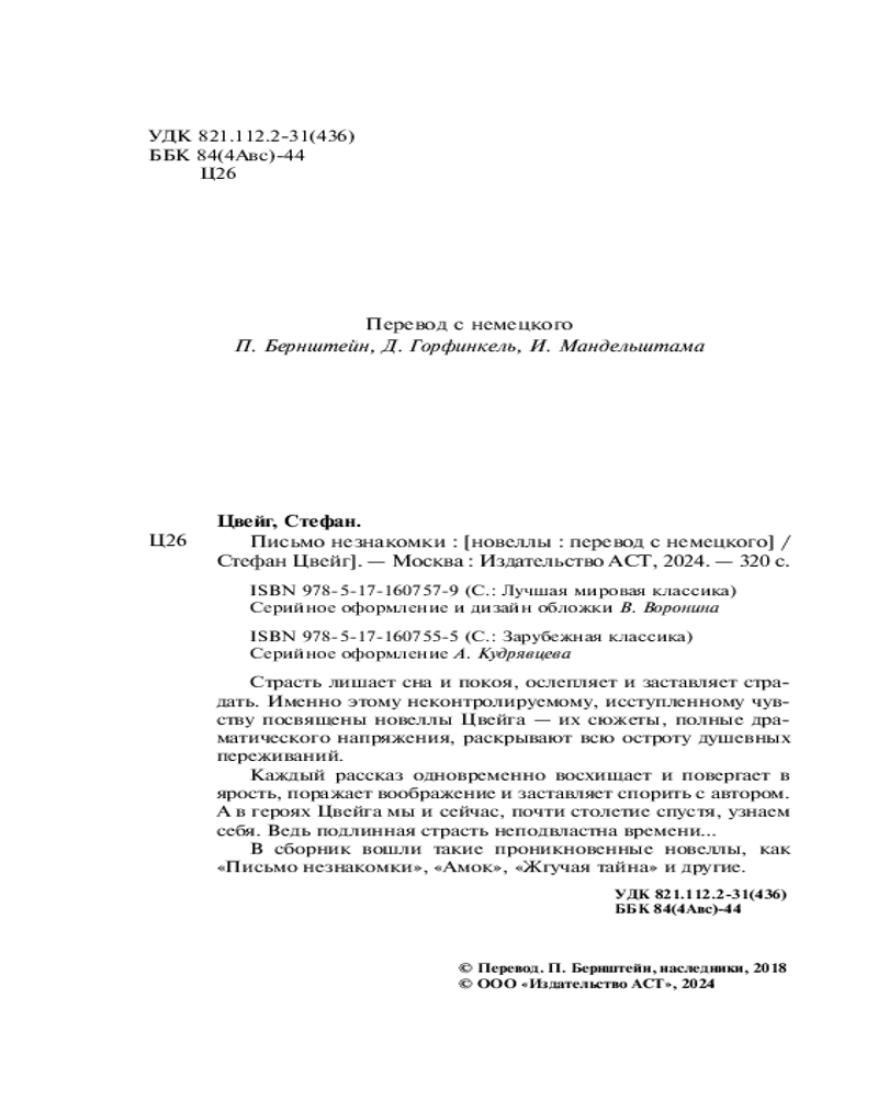 💳 Оплатить за товар можно при получении 🇰🇿 Есть бесплатная доставка по Казахстану от 1 дня 🎁 Копите бонусы с каждой покупки Серия: Лучшая мировая классика Страсть лишает сна и покоя, ослепляет и заставляет страдать. Именно этому неконтролируемому, исступленному чувству посвящены новеллы Цвейга — их сюжеты, полные драматического напряжения, раскрывают всю остроту душевных переживаний. Каждый рассказ одновременно восхищает и повергает в ярость, поражает воображение и заставляет спорить с автором. А в героях Цвейга мы и сейчас, почти столетие спустя, узнаем себя. Ведь подлинная страсть неподвластна времени... |
