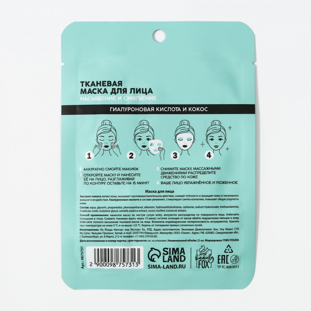 Отзывы «Маска для лица тканевая с гиалуроновой кислотой и кокосом «Exotic coconut»»