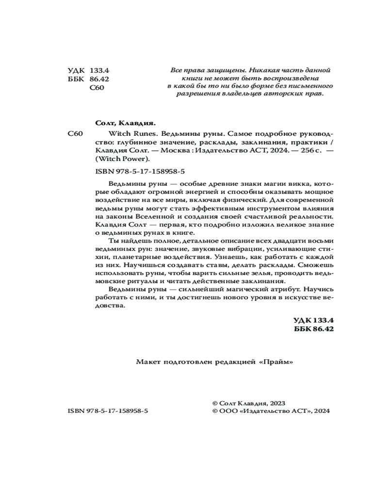 💳 Оплатить за товар можно при получении 🇰🇿 Есть бесплатная доставка по Казахстану от 1 дня 🎁 Копите бонусы с каждой покупки Серия: Witch Power Ведьмины руны — особые древние знаки магии викка, которые обладают огромной энергией и способны оказывать мощное воздействие на все миры, включая физический. Для современной ведьмы руны могут стать эффективным инструментом влияния на законы Вселенной и создания своей счастливой реальности. Клавдия Солт — первая, кто подробно изложил великое знание о ведьминых рунах в книге. |
