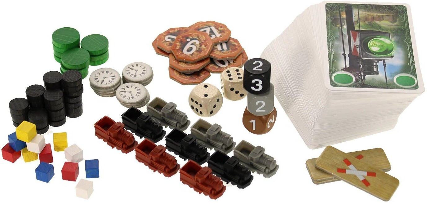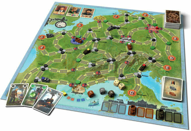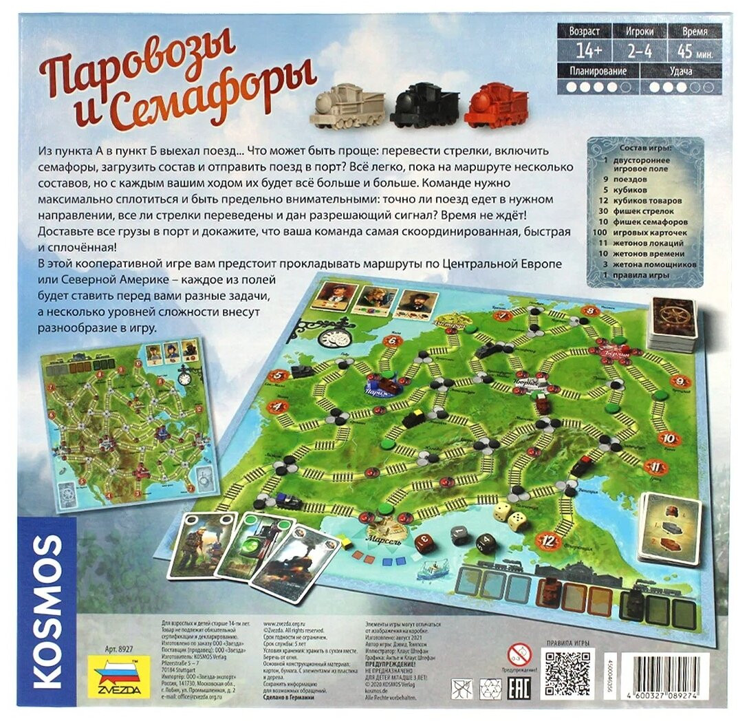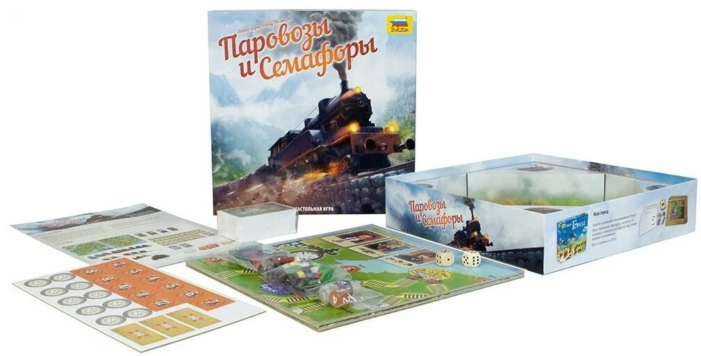 Звезда Игра настольная «Паровозы и Семафоры»В данный момент этот товар отсутствует в продаже. Возможно, у нас найдется аналогичный или похожий товар здесь. Наш паровоз вперёд летит! В этой игре участники все вместе управляют движением поездов в Центральной Европе или Северной Америке. В свой ход активный игрок берёт карточку транспортной инструкции и следует её указаниям: выставляет и перемещает поезда. Дальность их движения определяется с помощью специальных кубиков. Чтобы спланировать маршрут на будущее, игрок может разыграть карточки с руки, которые позволяют установить семафоры, переключить стрелки, загрузить и отправить поезда.Вам кажется, что всё очень легко и просто? Но все составы двигаются с разной скоростью и только вперёд, а время и количество транспортных инструкций ограничены. Кроме того, ваши поезда не должны уезжать в тупики, сталкиваться, или обгонять друг друга — всё это лишит вас драгоценного времени. Координируйте свои действия и помогайте друг другу. Только так вы сможете победить!  |
