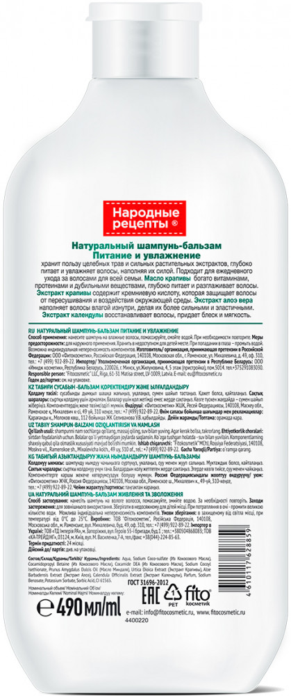 Фитокосметик Шампунь-бальзам для волос «Питание и увлажнение»