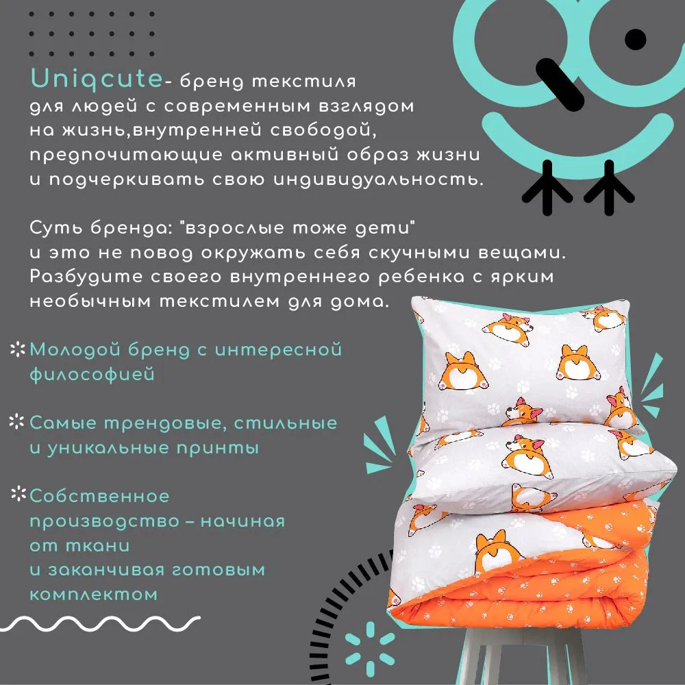 💳 Оплатить за товар можно при получении 🇰🇿 Есть бесплатная доставка по Казахстану от 1 дня 🎁 Копите бонусы с каждой покупки Взрослая жизнь совсем не повод окружать себя скучными однотонными вещами! Разбудите своего внутреннего ребенка с ярким, милым и необычным постельным бельем Unicqute. Комплект постельного белья из поплина — натуральная ткань полотняного переплетения, имеющая более высокую линейную плотность за счет использования более тонких нитей при производстве, что делает ее более деликатной, гладкой и приятной на ощупь, а также обеспечивает низкий уровень усадки после стирки и долговечность эксплуатации. Ткань обработана по технологии Wise pro специальным мягчителем, благодаря чему поплин имеет идеальную, шелковистую, гладкую и струящуюся поверхность. Ткань меньше мнется, и глажка такому постельному белью практически не нужна. Постельное белье Uniqcute выпускается в красивой подарочной упаковке, идеально подойдет для сна и для отдыха. |