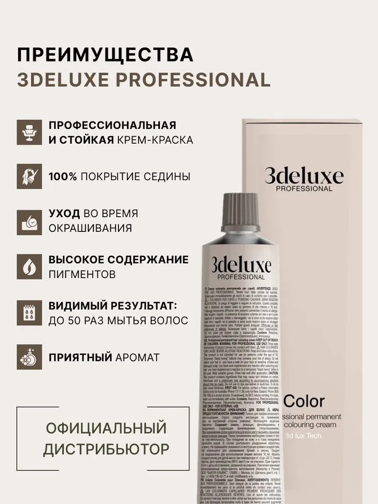 3Deluxe professional Крем-краска для волос, оттенок 5.31 Светло-каштановый золотисто-пепельный