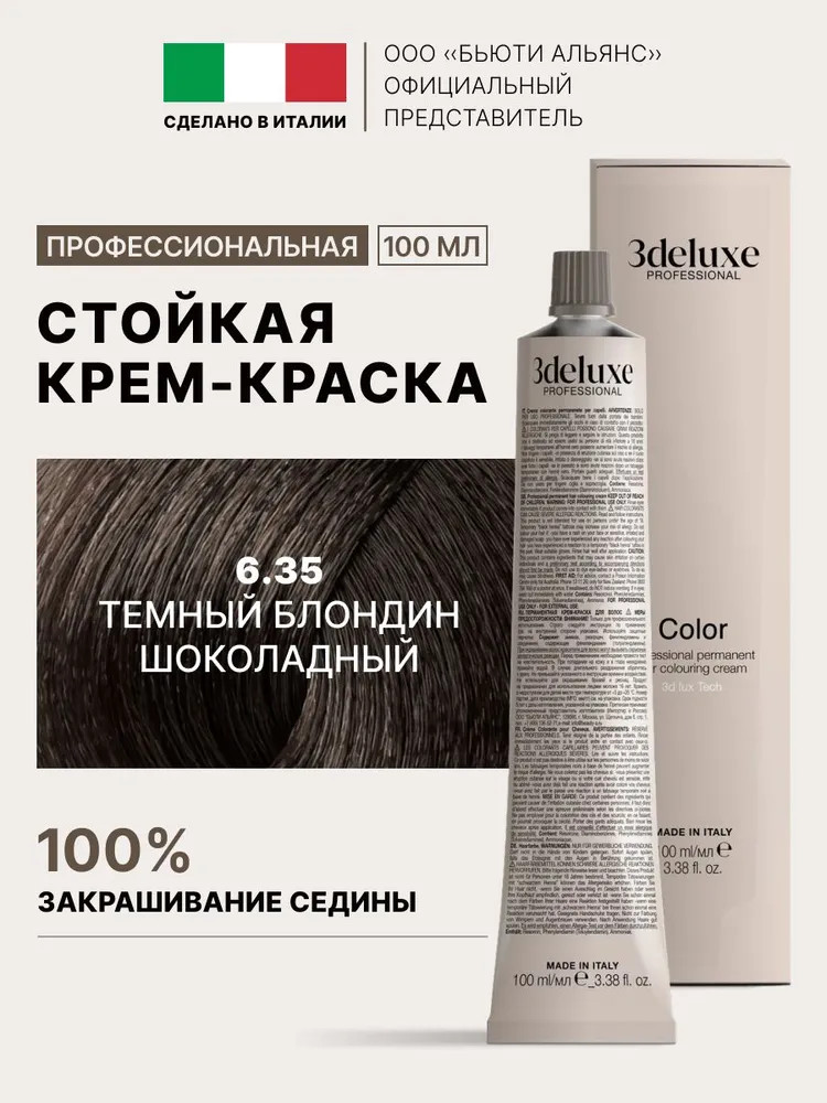 3Deluxe professional Крем-краска для волос, оттенок 6.35 Темный шоколадный