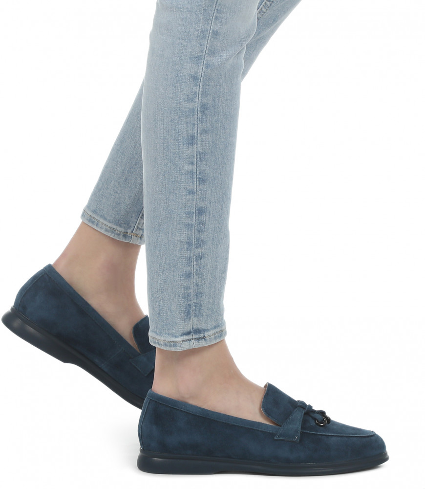 Лоферы из натуральной замши из кожи козленка — простые и одновременно удобные туфли в стиле Casual, BCBG. Универсальный вариант на каждый день. Толщина подошвы — 1,3 см. Способ соединения подошвы — клеевой. Высота обуви — 6,5 см.