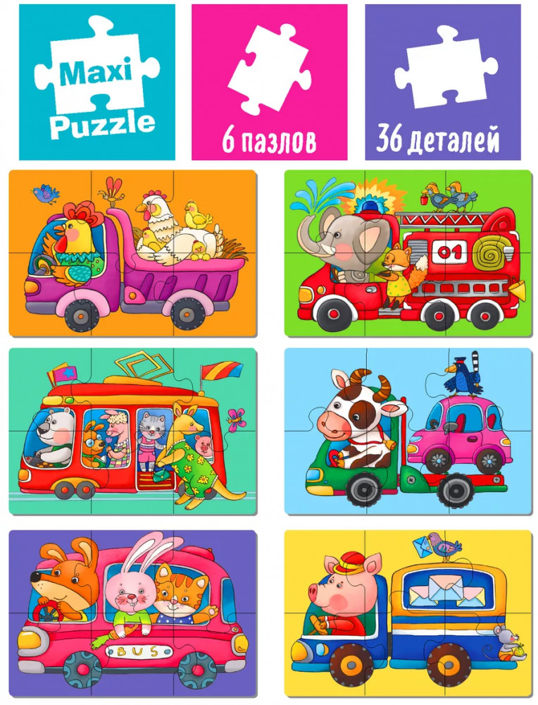 Пазл деревянный «Зверята на машинках»-20% +30
