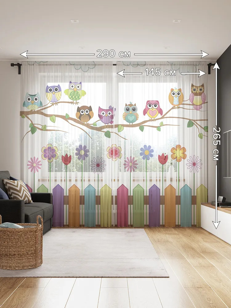 Изделие изготовлено из сетчатого полотна (фатин), содержащего волокна 100% полиэстера, хорошо держит форму, легко гладится, не дает усадки и не растягивается при длительной эксплуатации. Занавеска длинная на шторной ленте 6 см. уже готова к использованию, ее можно повесить на крючки (в комплекте 50 крючков), карниз для штор, гардину или трубу. Тюль-сеточка с фотопринтом отлично подходит для кухни и комнаты. Края имеют ровный срез, не осыпаются в процессе эксплуатации и не требуют дополнительной обработки. Вуаль подходит для дачи, спальни, балкона, кабинета и детской комнаты, отлично рассеивает и пропускает небольшое количество дневного света около 80%.