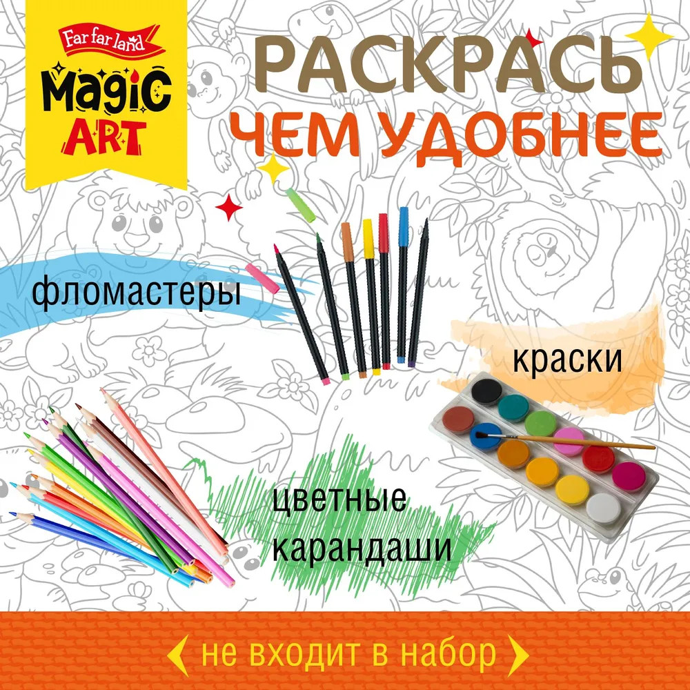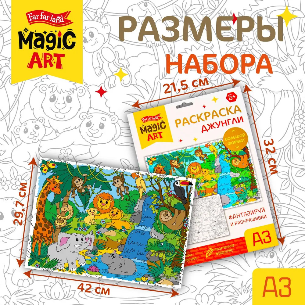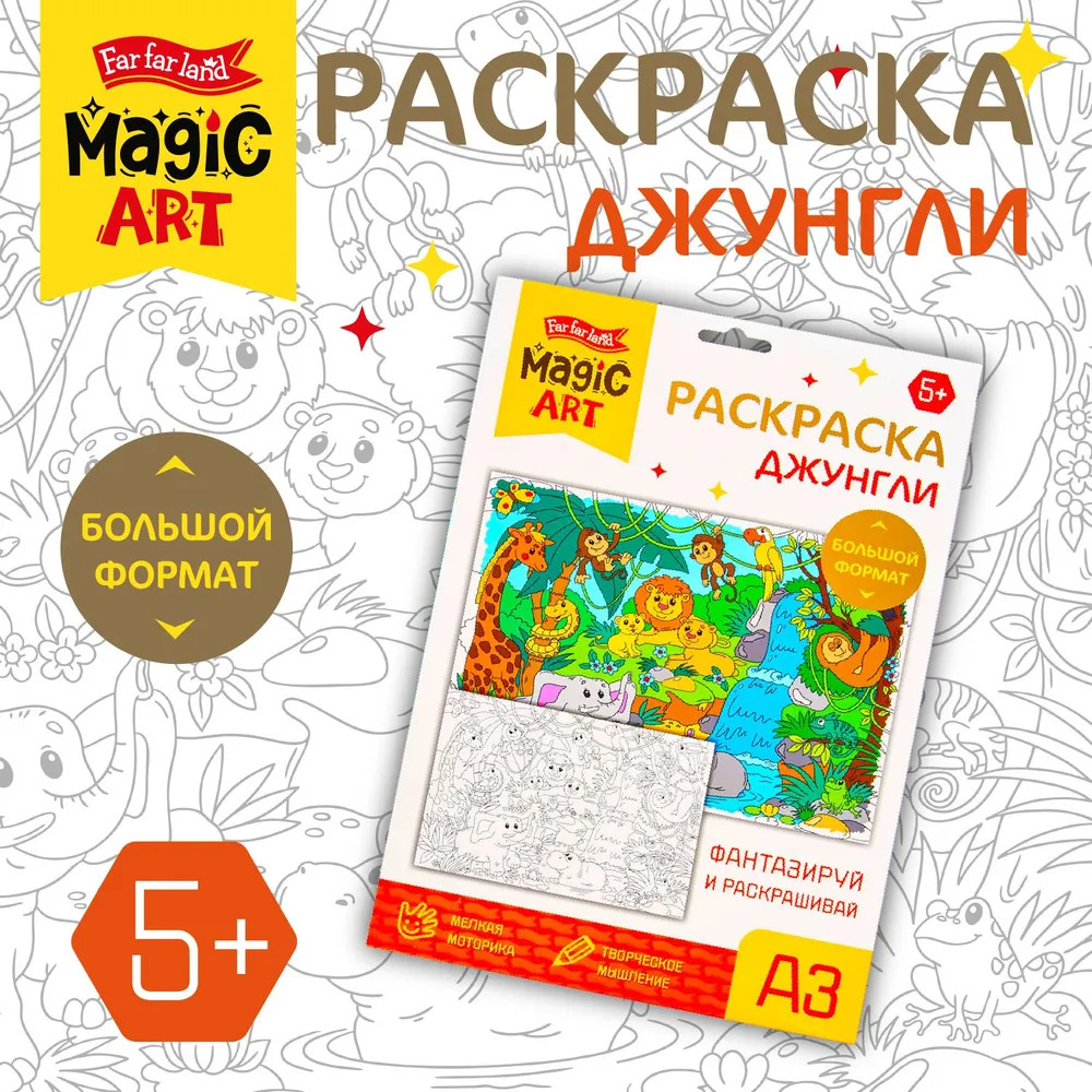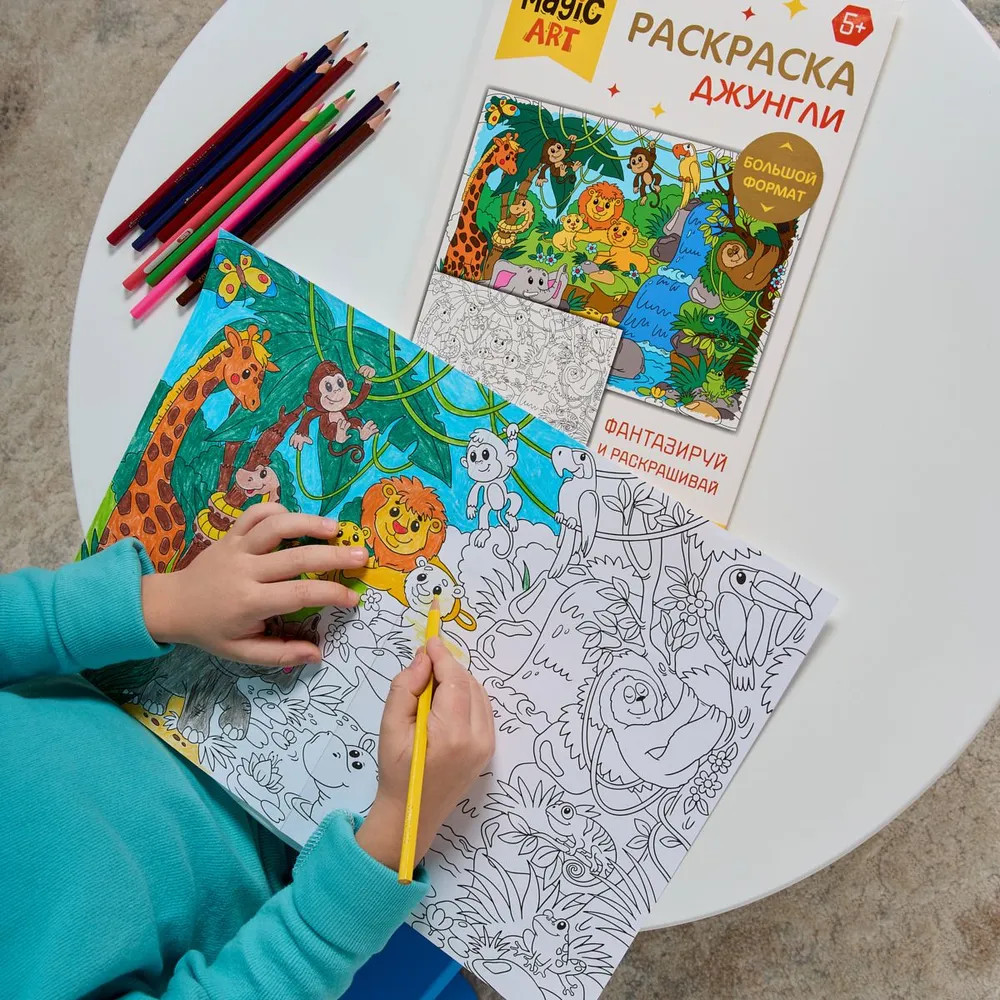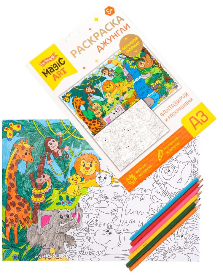 💳 Оплатить за товар можно при получении 🇰🇿 Есть бесплатная доставка по Казахстану от 1 дня 🎁 Копите бонусы с каждой покупки Раскраска для детей «Джунгли» — это замечательный подарок для юных художников. Большой размер раскраски, четкие контуры и милые персонажи несомненно привлекут внимание и надолго займут ребенка. В раскраске для детей «Джунгли» изображены обитатели и природа джунглей. Раскрашивать можно цветными карандашами, фломастерами или красками. Процесс раскрашивания развивает мелкую моторику, творческое мышление и фантазию ребенка. |