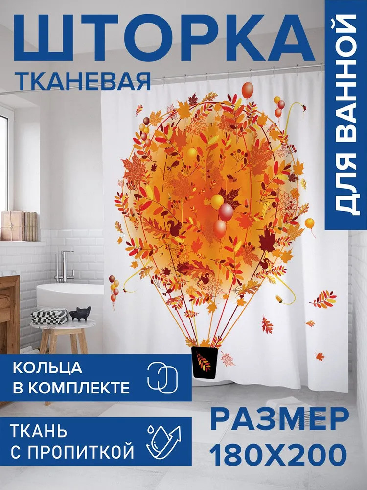 Штора для ванной «Осенний аэростат» | Осенний аэростат | JoyArty