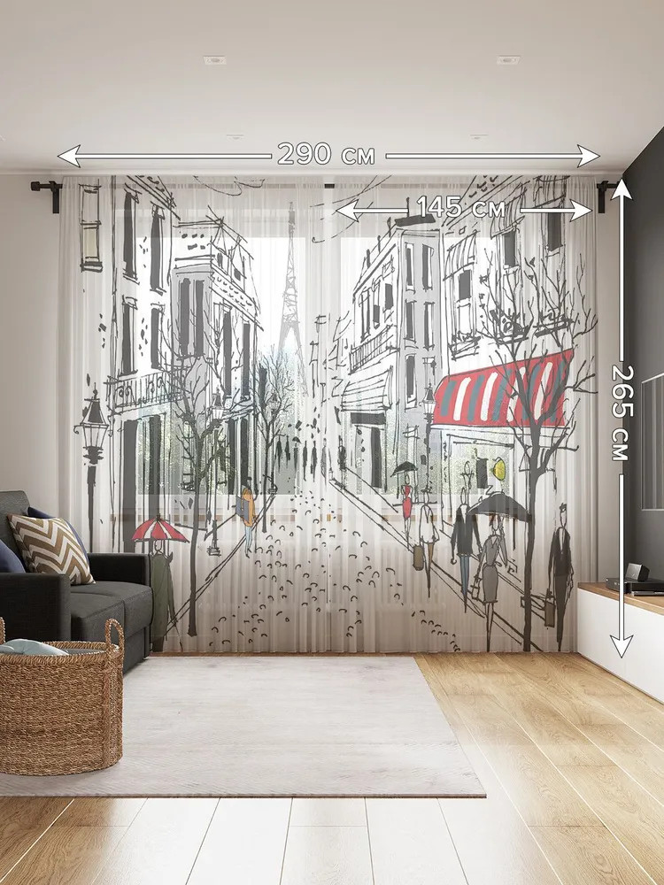 Изделие изготовлено из сетчатого полотна (фатин), содержащего волокна 100% полиэстера, хорошо держит форму, легко гладится, не дает усадки и не растягивается при длительной эксплуатации. Занавеска длинная на шторной ленте 6 см. уже готова к использованию, ее можно повесить на крючки (в комплекте 50 крючков), карниз для штор, гардину или трубу. Тюль-сеточка с фотопринтом отлично подходит для кухни и комнаты. Края имеют ровный срез, не осыпаются в процессе эксплуатации и не требуют дополнительной обработки. Вуаль подходит для дачи, спальни, балкона, кабинета и детской комнаты, отлично рассеивает и пропускает небольшое количество дневного света около 80%.