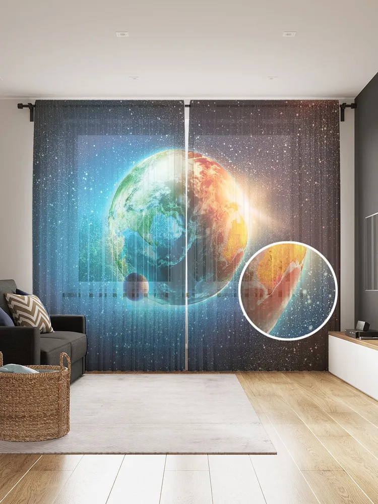Изделие изготовлено из сетчатого полотна (фатин), содержащего волокна 100% полиэстера, хорошо держит форму, легко гладится, не дает усадки и не растягивается при длительной эксплуатации. Занавеска длинная на шторной ленте 6 см. уже готова к использованию, ее можно повесить на крючки (в комплекте 50 крючков), карниз для штор, гардину или трубу. Тюль-сеточка с фотопринтом отлично подходит для кухни и комнаты. Края имеют ровный срез, не осыпаются в процессе эксплуатации и не требуют дополнительной обработки. Вуаль подходит для дачи, спальни, балкона, кабинета и детской комнаты, отлично рассеивает и пропускает небольшое количество дневного света около 80%.