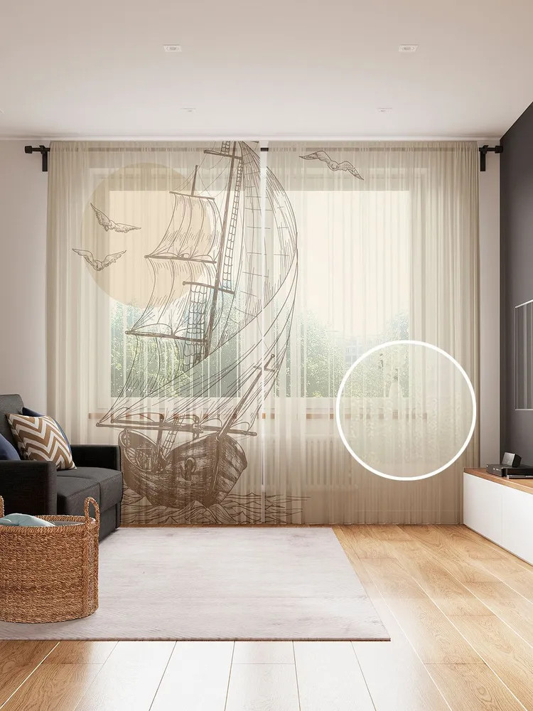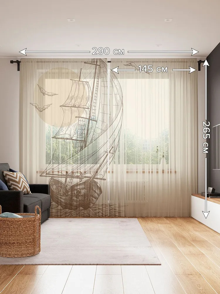 Тюль «Начертания корабля в море» | Начертания корабля в море | JoyArty