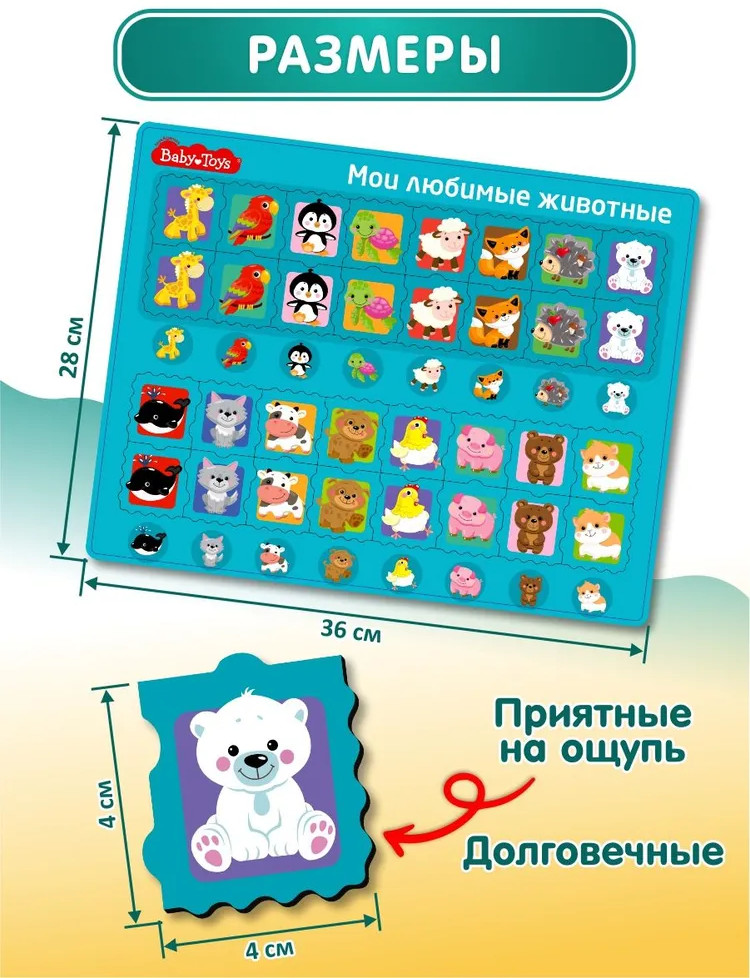 💳 Оплатить за товар можно при получении 🇰🇿 Есть бесплатная доставка по Казахстану от 1 дня 🎁 Копите бонусы с каждой покупки Планшетный пазл для детей «Мои любимые животные» — это большой пазл из плотного картона, который собирается на специальном основании. На игровом поле пазла изображены яркие картинки-подсказки. Яркие картинки выполнены из высококачественного многослойного картона толщиной более 2 мм, благодаря чему элементы не теряют форму и остаются ровными. Лицевая сторона элементов защищена слоем специального экологически чистого покрытия, который препятствует быстрому истиранию и выцветанию картинок. |