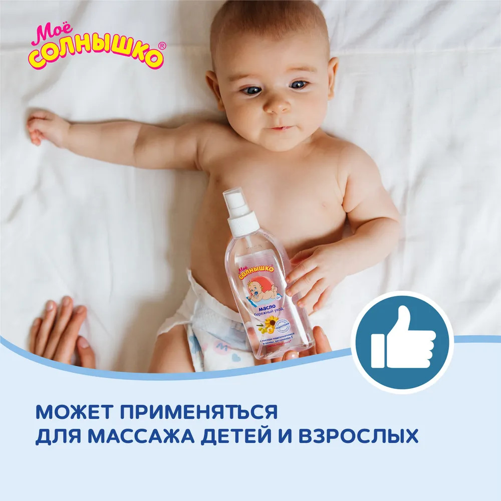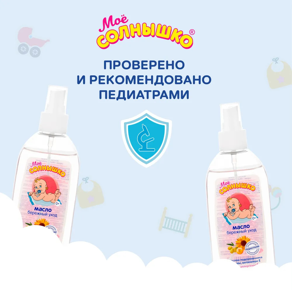 Моё солнышко Масло-спрей детское «Бережный уход»В данный момент этот товар отсутствует в продаже. Возможно, у нас найдется аналогичный или похожий товар здесь. Масло подходит для малышей с первых дней жизни. Благодаря маслам подсолнечника и оливы, а также витамину E бережно ухаживает, интенсивно увлажняет, придает коже мягкость и шелковистость. Обеспечивает пролонгированное скольжение по коже и может применяться для массажа детей с рождения и взрослых. Без парабенов и красителей, гипоаллергенно. Клинически проверено и рекомендовано педиатрами. Формула создана для сведения к минимуму риска возникновения аллергической реакции в случае индивидуальной непереносимости ингредиентов состава. |