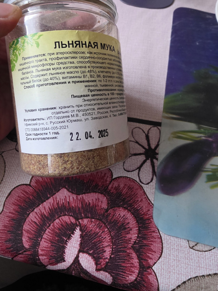 Травник Гордеев Льняная мука (размолотое семя льна)-30% +22 приятный вкус хороший помол свежая удобная баночка