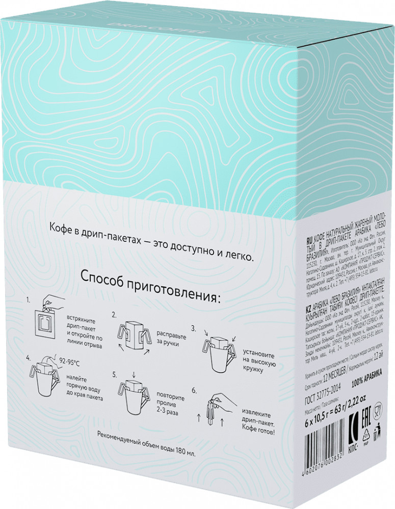 Молотый кофе Lebo в дрип-пакетах – это 100% натуральный и изысканный продукт. Сорт Бразилия Моджиана известен своим высоким качеством, а арабика – насыщенным и мягким вкусом. Особенностью данного продукта является гармоничное сочетание ароматов шоколада, орехов и карамели, которое создает неповторимую атмосферу и делает каждый глоток незабываемым. Процесс приготовления молотого кофе Lebo прост и удобен благодаря дрип-пакетам. Вам не потребуется кофеварка или френч-пресс – достаточно просто залить кипяток в пакет и дать настояться несколько минут. |