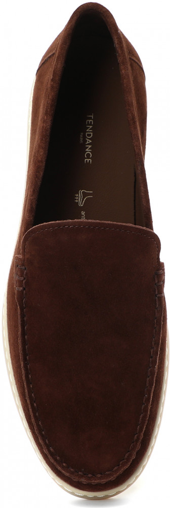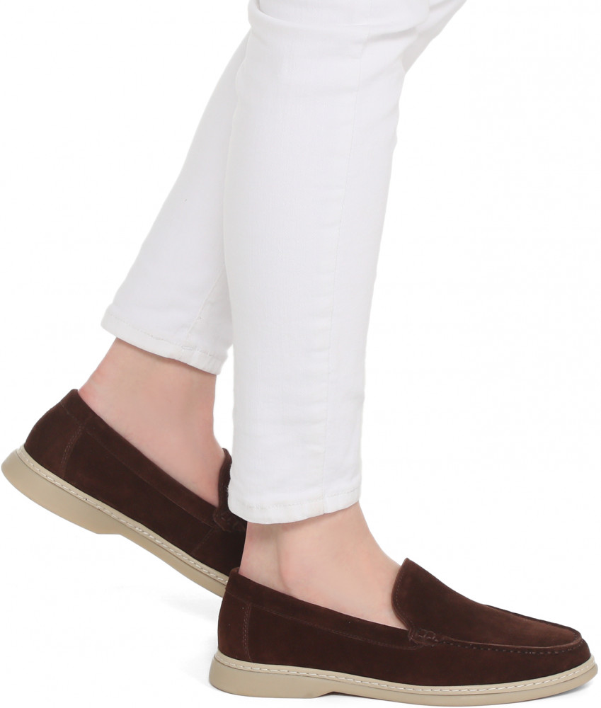 Лоферы из натуральной замши козлёнка — простые и одновременно удобные туфли. Универсальный вариант на каждый день. Толщина подошвы — 1,3 см. Способ соединения подошвы — клеепрошивной. Высота обуви — 5,5 см.
