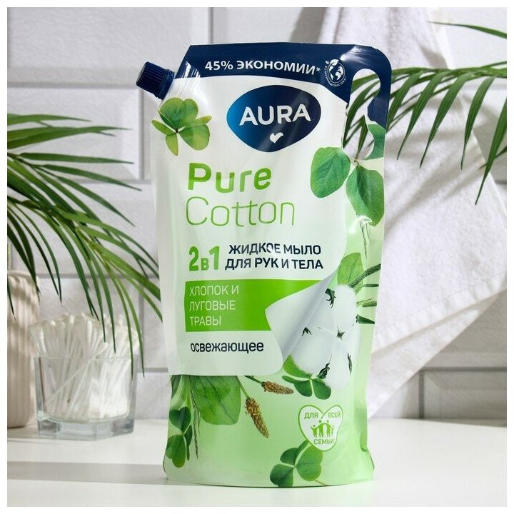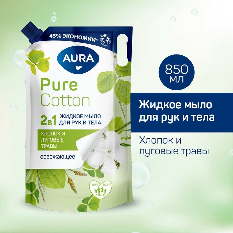 Aura Мыло для рук и тела жидкое «Хлопок и луговые травы»