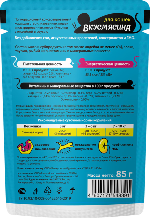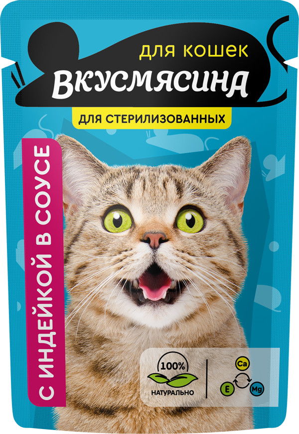 Вкусмясина Корм влажный для стерилизованных кошек «Индейка в соусе»
