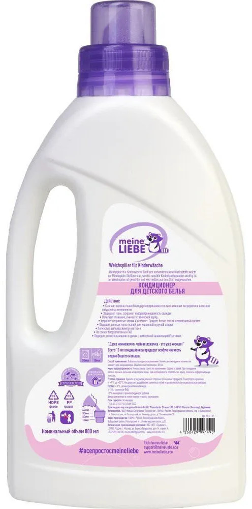 Meine liebe Кондиционер для детского белья концентратВ данный момент этот товар отсутствует в продаже. Возможно, у нас найдется аналогичный или похожий товар здесь. Подходит для всех типов тканей, для машинной и ручной стирки. Быстро и без остатка выполаскивается из ткани. Всего 5 мл кондиционера придадут особую мягкость вещам Вашего малыша. Без отдушек, без красителей. Безопасен для чувствительной кожи детей с первых дней жизни. Облегчает глажение, оказывает антистатический эффект. Сохраняет цвет и структуру волокон, предотвращает потерю формы одежды даже после многократных стирок. Подходит для всех типов тканей, для машинной и ручной стирки; быстро и без остатка выполаскивается из ткани. |