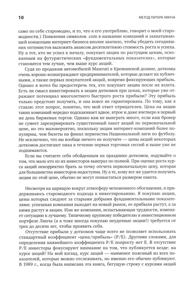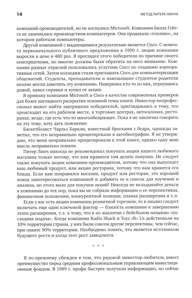 Метод Питера Линча. Стратегия и тактика индивидуального инвестораВ данный момент этот товар отсутствует в продаже. Возможно, у нас найдется аналогичный или похожий товар здесь. Эта книга принадлежит перу одного из самых успешных финансовых менеджеров в мире. Питер Линч не предлагает волшебных формул и рецептов из серии "как стать миллионером". Его идея проста: несложные приемы оценки позволяют даже начинающему инвестору стать экспертом и принимать решения не хуже профессионалов с Уолл-стрит. Сначала он предлагает читателю оценить себя как потенциального инвестора. Затем переходит к вопросам поиска перспективных инвестиционных возможностей. Читатель узнает, к чему стремиться, чего избегать, как интерпретировать финансовые показатели. Разъяснения предельно просты и понятны, как все в этой книге, написанной с удивительным для подобной литературы остроумием. Наконец, автор переходит к конкретным аспектам инвестирования, в частности отвечает на вопрос, когда покупать и когда продавать. Книга предназначена для индивидуальных инвесторов и широкого круга читателей, интересующихся вопросами инвестирования в акции. |