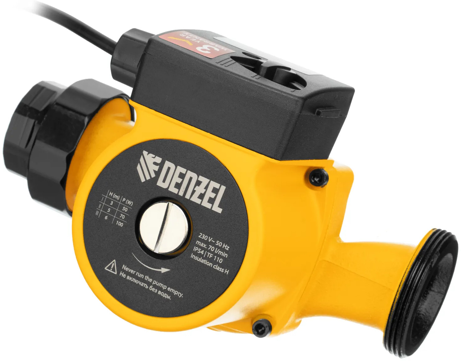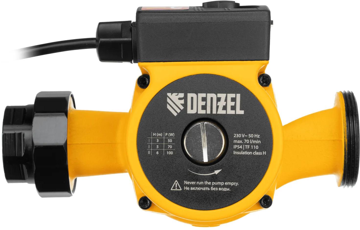 Циркуляционный насос Denzel CP32-6 с кабелем длиной 1 м имеет монтажную длину 180 мм и обеспечивает напор до 6 м, максимальный объем перекачиваемой жидкости составляет 70 л/мин. Устройство обеспечивает непрерывное движение горячей воды температурой до 110 °C по трубопроводу. Насос позволит организовать эффективную систему теплоснабжения загородного дома.