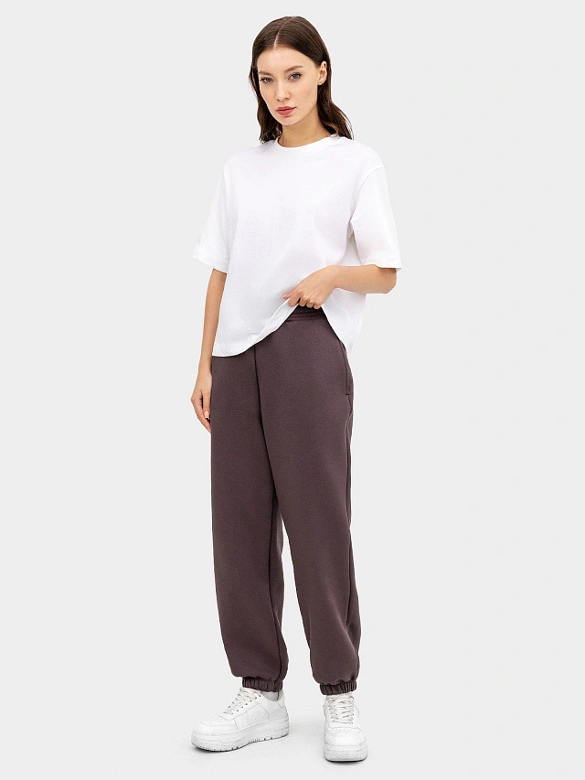 Спортивные брюки из футера с нежным подчесом. В составе полотна преобладает натуральный хлопок, прочности и долговечности добавляет полиэстер. Стильный оверсайз-силуэт не сковывает движений. Удобные боковые карманы, высокая линия талии и внутренний шнур-завязка гарантируют комфорт. Брюки идеально подойдут для спортивных занятий и прогулок, путешествий и активного отдыха!