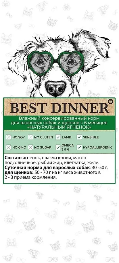 Best Dinner Консервы для собак «Натуральный ягненок»