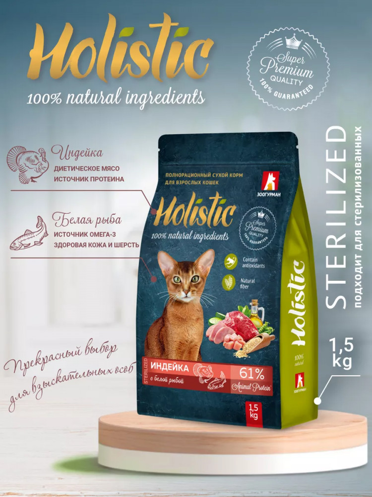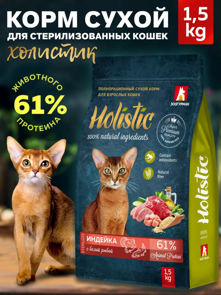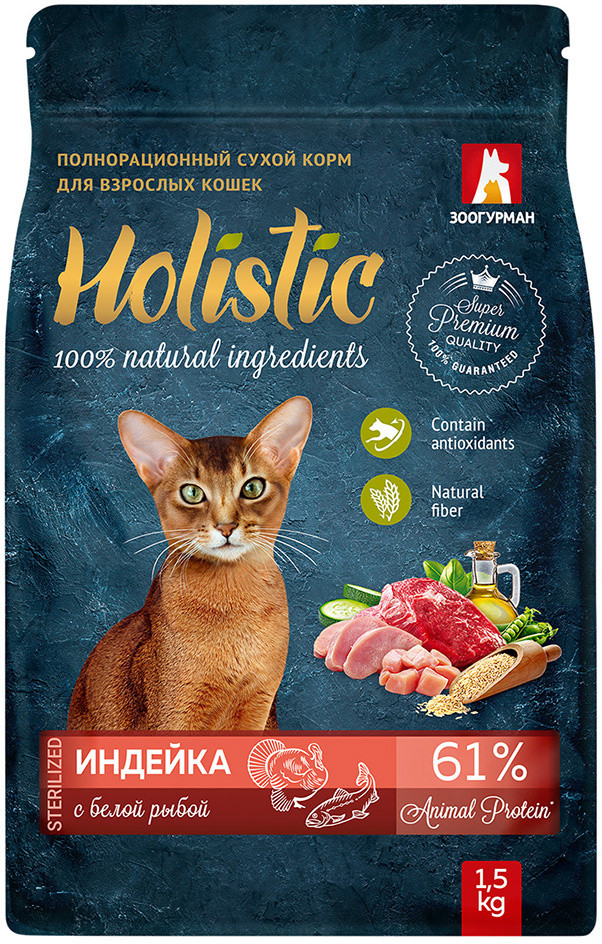 Зоогурман Корм для взрослых кошек сухой «Индейка с белой рыбой»