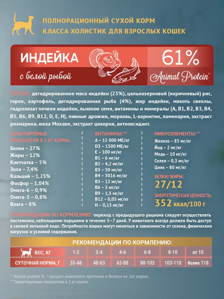 Отзывы «Корм для взрослых кошек сухой «Индейка с белой рыбой»»