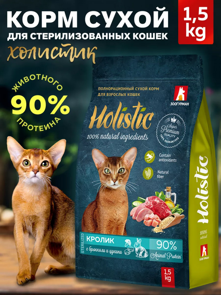 Зоогурман Корм для взрослых кошек сухой «Кролик с брокколи и цукини»
