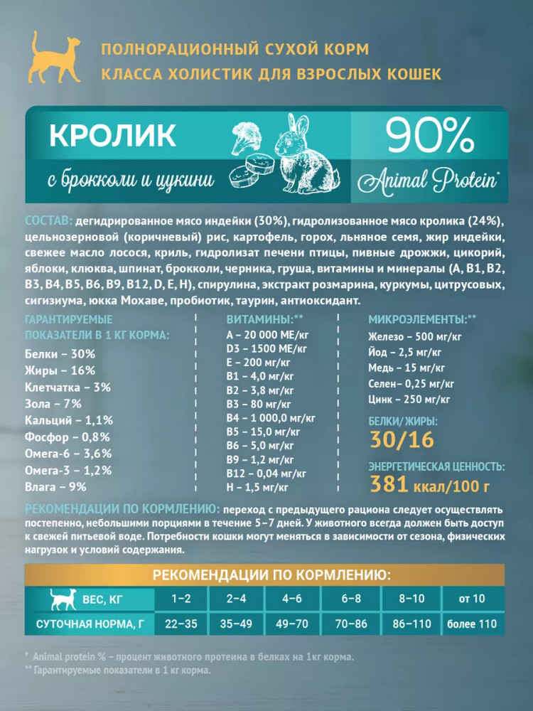 Отзывы «Корм для взрослых кошек сухой «Кролик с брокколи и цукини»»