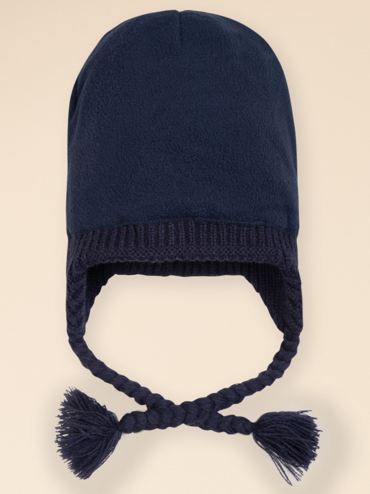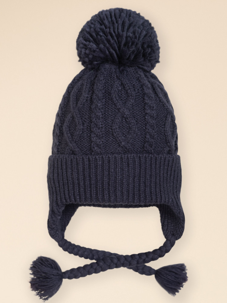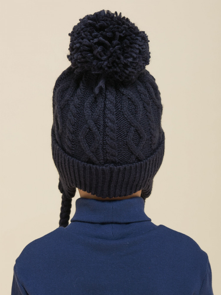 Стильная и уютная детская шапка с помпоном. Нейтральный дизайн делает её подходящей и мальчикам, и девочкам. Модель с отворотом и цельновывязаными функциональными ушками с завязками выполнена из 100% акрила. Материал тёплый, приятный на ощупь и очень комфортный. Шапку легко стирать — она не растягивается, не мнётся и сохраняет первозданный вид надолго. Отличные терморегулирующие свойства акрила позволяют носить изделие в холодную погоду.