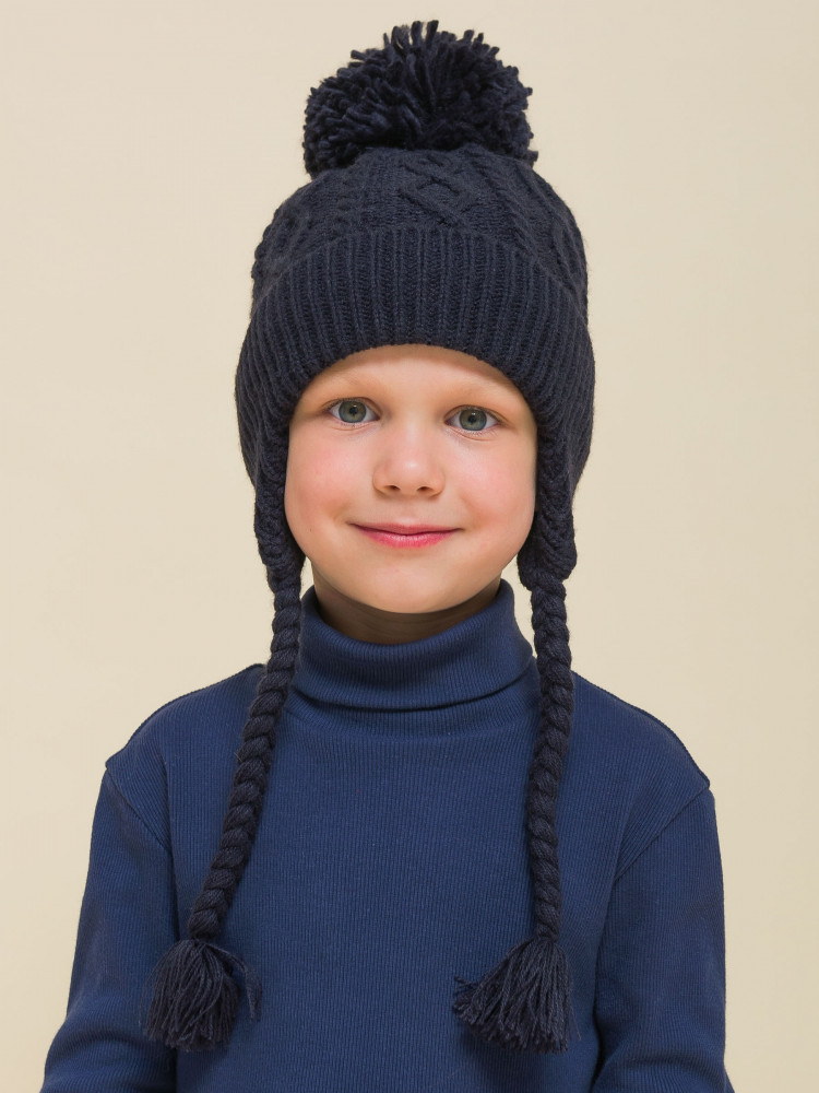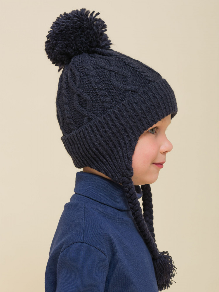 Стильная и уютная детская шапка с помпоном. Нейтральный дизайн делает её подходящей и мальчикам, и девочкам. Модель с отворотом и цельновывязаными функциональными ушками с завязками выполнена из 100% акрила. Материал тёплый, приятный на ощупь и очень комфортный. Шапку легко стирать — она не растягивается, не мнётся и сохраняет первозданный вид надолго. Отличные терморегулирующие свойства акрила позволяют носить изделие в холодную погоду.