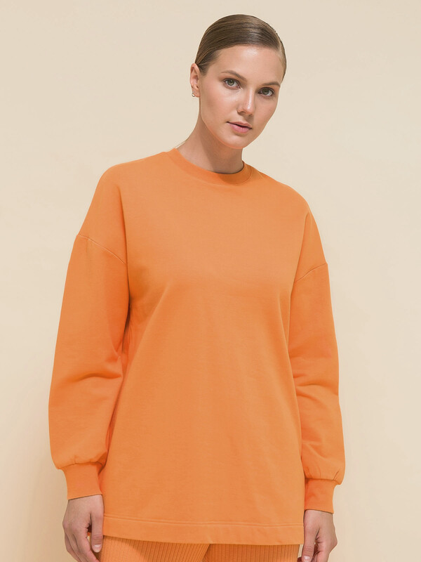 Женский свитшот со спущенным плечом. Толстовка с начёсом подарит вам ощущение комфорта и уюта. Оверсайз-свитшот подходит для любого типа фигуры. Объёмные толстовки — один из актуальных модных трендов. Свитшот однотонный, без принта. За ним легко ухаживать. В составе ткани преобладает высококачественный хлопок — изделие мягкое, тёплое, воздухопроницаемое.