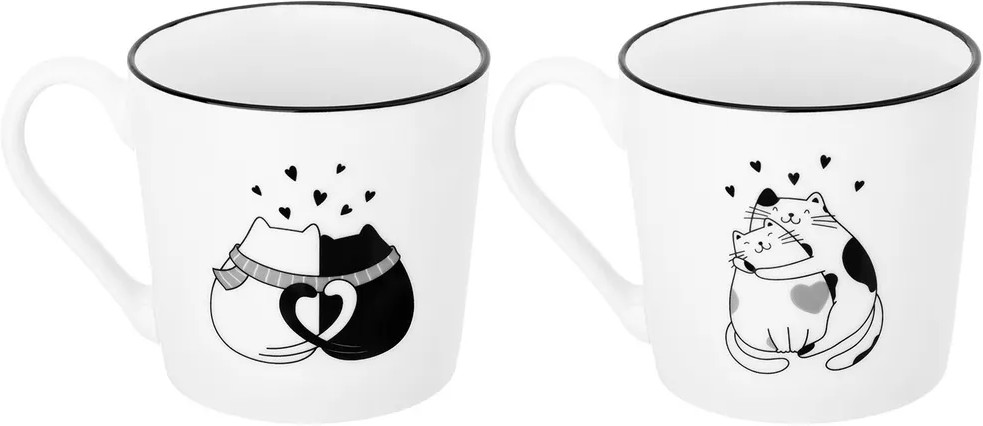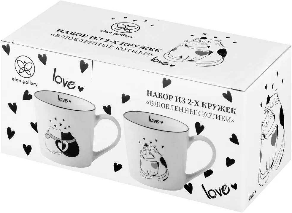 Elan Gallery Набор кружек «Влюбленные котики»-40% +125 легкие удобно держать красивый рисунок большой объем мимишные кружки