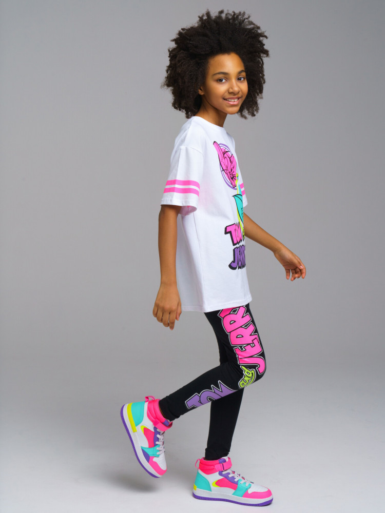 Комплект: футболка и легинсы из качественного эластичного и приятного на ощупь трикотажа. Эластичный пояс. Высокое содержание хлопка 95%. Благодаря наличию эластана в составе ткани изделие держит форму и меньше мнется.