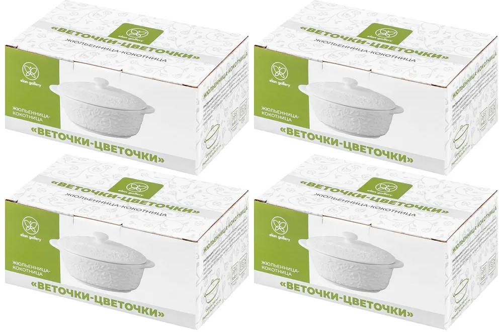 Elan Gallery Набор жюльенниц-кокотниц «Веточки-цветочки»В данный момент этот товар отсутствует в продаже. Возможно, у нас найдется аналогичный или похожий товар здесь. Серия: Веточки-цветочки Набор из четырёх жюльенниц-кокотниц Elan Gallery «Веточки-цветочки» с крышками выполнен из белого фарфора в классическом дизайне. Посуда серии украшена рельефным узором в виде изящных веточек с маленькими цветочками. Высота жульенницы без крышки — 5 см, внутренний размер — 12,5 × 8,5 × 4,5 см. Формы с крышечками можно использовать как для приготовления жюльена, так и для разнообразных десертов, кондитерских и кулинарных изделий. Красивые жюльенницы после приготовления можно сразу подавать на стол. Фарфоровая посуда отличается от керамической повышенной плотностью. Фарфор не впитывает цвет продуктов и не деформируется от влаги, чему может быть подвержена керамика. Не рекомендуется применять абразивные моющие средства. Можно использовать в микроволновой печи и мыть в посудомоечной машине. Станет отличным подарком для любой хозяйки, которая ценит стильную сервировку. Понравится любителям посуды в скандинавском стиле. Серия «Веточки-цветочки» позволит собрать сервиз в едином стиле и сможет стать настоящим украшением вашего дома. |
