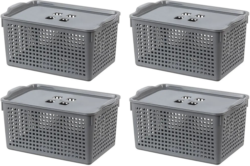 El Casa Набор корзин для храненияВ данный момент этот товар отсутствует в продаже. Возможно, у нас найдется аналогичный или похожий товар здесь. Серия: Лофт Органайзеры выполнены из полипропилена. Преимущество данного материала над обычным пластиком в том, что он легкий по весу и наиболее безопасный для здоровья. В универсальном контейнере серого цвета можно хранить как овощи и фрукты, так и кухонные и хозяйственные принадлежности. Используйте ёмкость для косметики, бытовой химии, моющих средств. Специальное плетение с дырочками позволяет воздуху проникать внутрь и не дает продуктам испортиться от недостатка кислорода. Корзина может быть использована для белья, полотенец и хранения различных мелочей. Такую подставку можно поставить под раковину в ванной, возле стиральной машины или на полку. Ящички можно хранить компактно — один на другом. Используйте в детской комнате как стеллаж или ящик для игрушек. Товары представлены разных объемов, форм и расцветок, что позволит собрать уникальный набор, подходящий под ваши потребности. |