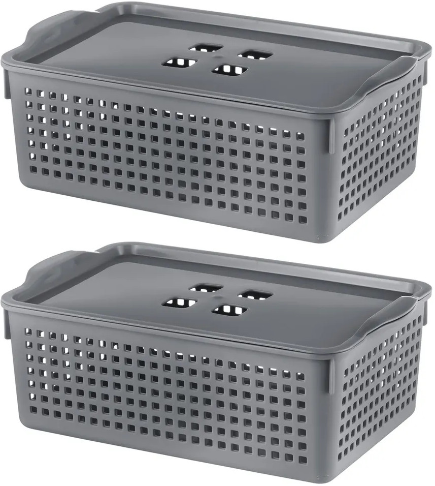 • корзина с крышкой объемом 3,8 литра (размер 29,5 × 18,5 × 10,5 см, дно 25 × 16 см) — 2 шт;