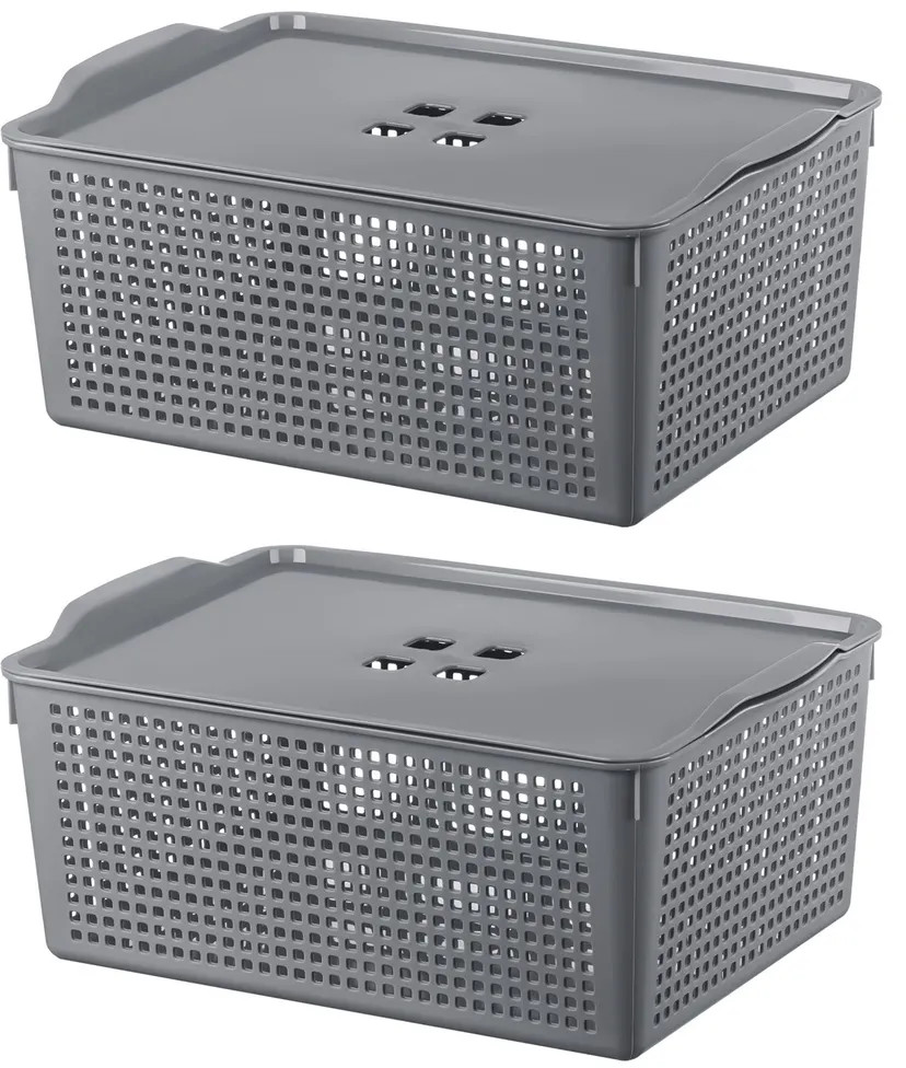 • корзина с крышкой объемом 13 литров (размер 39,5 × 27,2 × 16,8 см, дно 33,5 × 24 см) — 2 шт;
