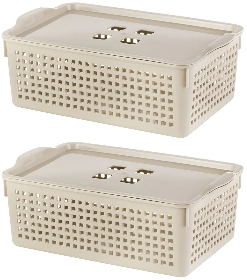 • корзина с крышкой объемом 3,8 литра (размер 29,5 × 18,5 × 10,5 см, дно 25 × 16 см) — 2 шт.