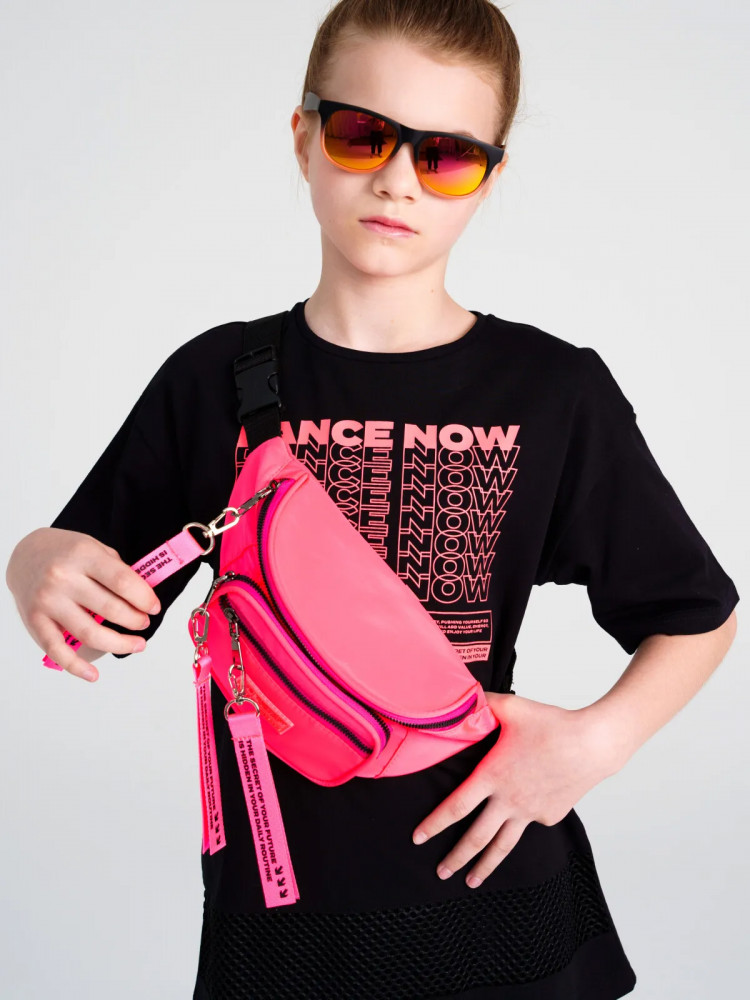 Сумка поясная для девочки. Регулируемый пояс, два кармана на молнии. Выполнена из синтетического материала полиэстер, который обеспечивает долговечность влагонепроницаемость и износостойкость. Такие сумочки для девочек 8-17 лет идеальны для весенних прогулок, активных игр и занятий спортом на открытом воздухе, во время путешествий. Яркая маленькая сумка изготовлена из плотной моющейся синтетической ткани. Помимо пояса, такую сумку можно носить через плечо.