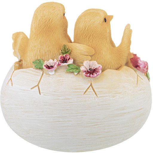 Фигурка декоративная способна преобразить любое помещение! Статуэтка выполнена из полистоуна. Полистоун — это искусственный камень, который сочетает в себе все качества натурального: прочность, устойчивость к влаге и солнечным лучам, отсутствие запаха. Кроме того, он не выделяет вредных веществ и является экологически чистым материалом. Два милых цыплёнка станут интересным элементом декора и принесут в дом красоту и уют. Яйцо декорировано розовыми цветами. Фигурка послужит украшением гостиной или спальни и добавит в ваш интерьер нотки индивидуальности и стиля. Превратите вашу кухню или дачу в уютное место с особой атмосферой благодаря этому сувениру! Вы можете разместить статуэтку на полке, столе или создать декоративную композицию вместе с другими украшениями. Цыплята станут чудесным подарком для ваших родных и близких на любой праздник. Пусть они будут символом вашей дружбы и создадут хорошее настроение взрослым и детям! |