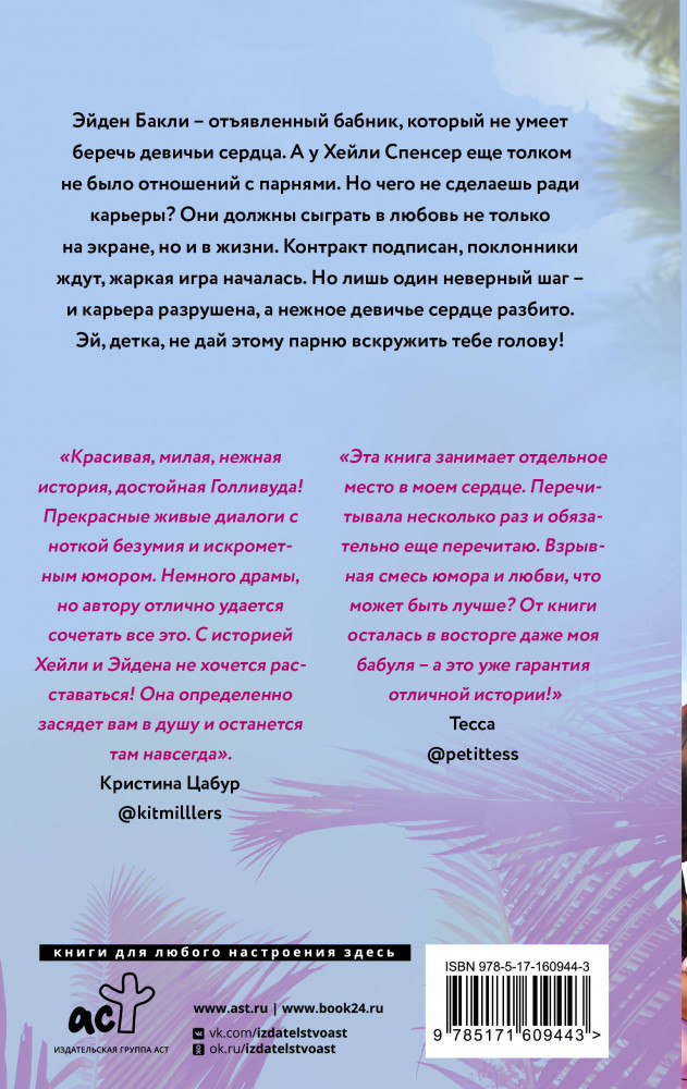 💳 Оплатить за товар можно при получении 🇰🇿 Есть бесплатная доставка по Казахстану от 1 дня 🎁 Копите бонусы с каждой покупки Серия: Яркие чувства Эйден Бакли — отъявленный бабник, который не умеет беречь девичьи сердца. А у Хейли Спенсер еще толком не было отношений с парнями. Но чего не сделаешь ради карьеры? Они должны сыграть в любовь не только на экране, но и в жизни. Контракт подписан, поклонники ждут, жаркая игра началась. Но лишь один неверный шаг — и карьера разрушена, а нежное девичье сердце разбито. Эй, детка, не дай этому парню вскружить тебе голову! |