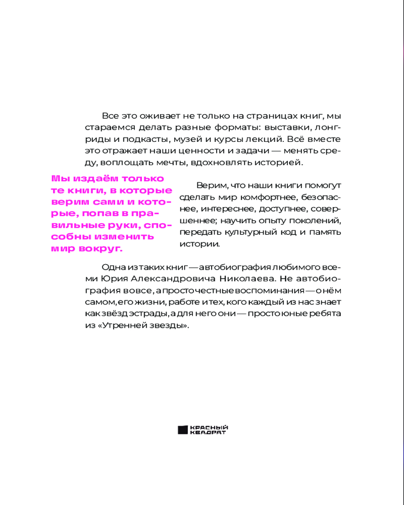💳 Оплатить за товар можно при получении 🇰🇿 Есть бесплатная доставка по Казахстану от 1 дня 🎁 Копите бонусы с каждой покупки Серия: За кадром. Истории легенд телевидения Книга, которую вы держите в руках, — не просто автобиография Юрия Александровича. Это честный рассказ наставника, без преувеличения, почти всех звёзд нашей эстрады — о жизни, дружбе, работе. О легендарной «Утренней звезде», о том, как сегодняшние звёзды приходили на сцену юными и наивными ребятами. Это советы от человека, которому мы обязаны целой индустрией поиска детских вокальных талантов. |