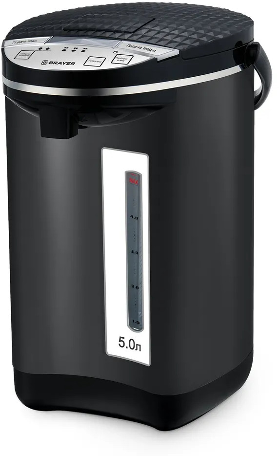 Brayer Термопот BR1098В данный момент этот товар отсутствует в продаже. Возможно, у нас найдется аналогичный или похожий товар здесь. Термопот Brayer BR1098 предназначен для кипячения и поддержания температуры воды. Сохранение определенной температуры нагрева в заданном режиме осуществляется за счет периодического включения/выключения нагревательного элемента и встроенного термодатчика. Электронасос при нажатии кнопки «Старт» подает воду через носик в чашку. Внутренний резервуар имеет вместимость 5 л и выполнен из нержавеющей стали, поэтому устойчив к появлению накипи и коррозии/ |
