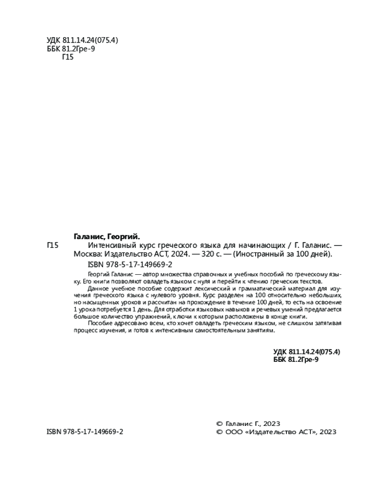 💳 Оплатить за товар можно при получении 🇰🇿 Есть бесплатная доставка по Казахстану от 1 дня 🎁 Копите бонусы с каждой покупки Серия: Иностранный за 100 дней Георгий Галанис — автор множества справочных и учебных пособий по греческому языку. Его книги позволяют овладеть языком с нуля и перейти к чтению греческих текстов. |