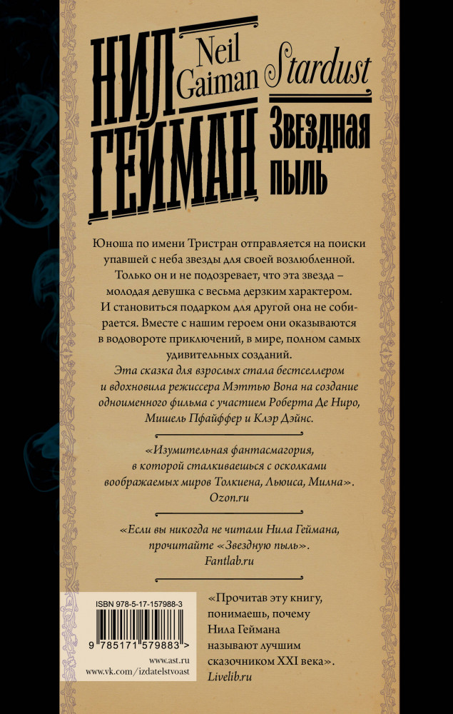 💳 Оплатить за товар можно при получении 🇰🇿 Есть бесплатная доставка по Казахстану от 1 дня 🎁 Копите бонусы с каждой покупки Серия: Гейман: книжная полка Юноша по имени Тристран отправляется на поиски упавшей с неба звезды для своей возлюбленной. Только он и не подозревает, что эта звезда — молодая девушка с весьма дерзким характером. И становиться подарком для другой она не собирается. Вместе с нашим героем они оказываются в водовороте приключений, в мире, полном самых удивительных созданий. |