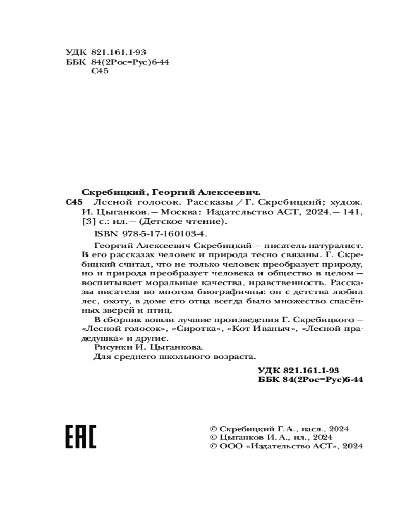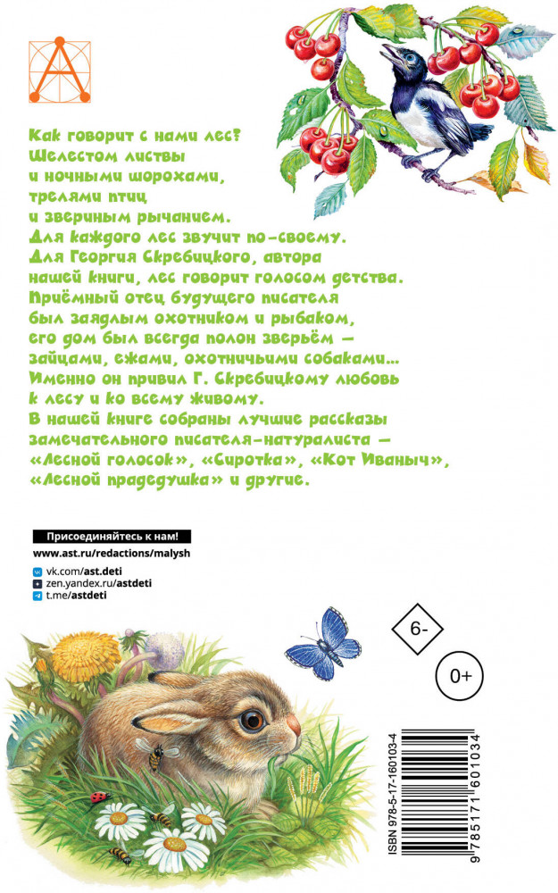 💳 Оплатить за товар можно при получении 🇰🇿 Есть бесплатная доставка по Казахстану 🎁 Копите бонусы с каждой покупки Серия: Детское чтение Георгий Алексеевич Скребицкий — писатель-натуралист. В его рассказах человек и природа тесно связаны. Г. Скребицкий считал, что не только человек преобразует природу, но и природа преобразует человека и общество в целом — воспитывает моральные качества, нравственность. Рассказы писателя во многом биографичны: он с детства любил лес, охоту, в доме его отца всегда было множество спасённых зверей и птиц. |